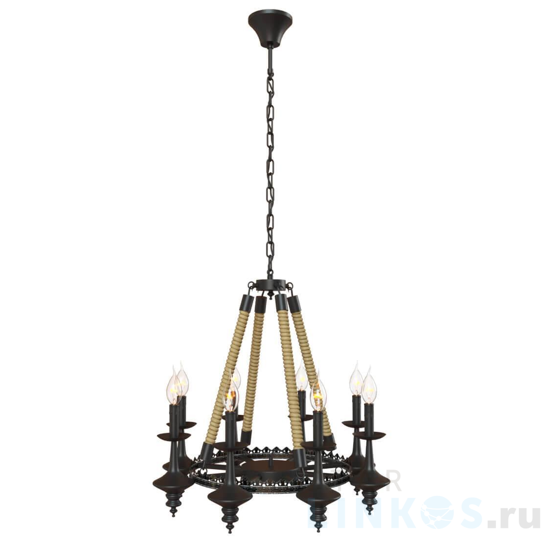 Поставщик рекомендует использовать лампы накаливания с цоколем E14 для освещения площади 17,8 м2. Подвесная люстра Loft IT Castle Loft1862-8 в стиле лофт используется в интерьере гостиной с установкой на потолок.