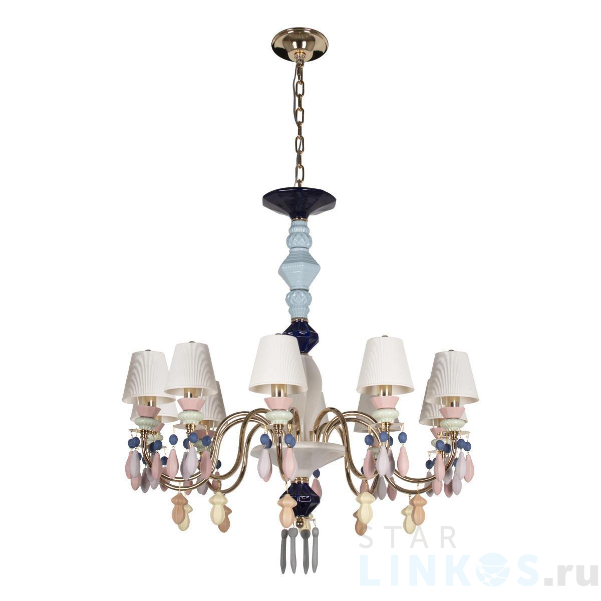 Поставщик рекомендует использовать лампы накаливания с цоколем E14. Подвесная люстра Loft IT Grace 10203/10 Mult в используется в интерьере гостиной с установкой на потолок.