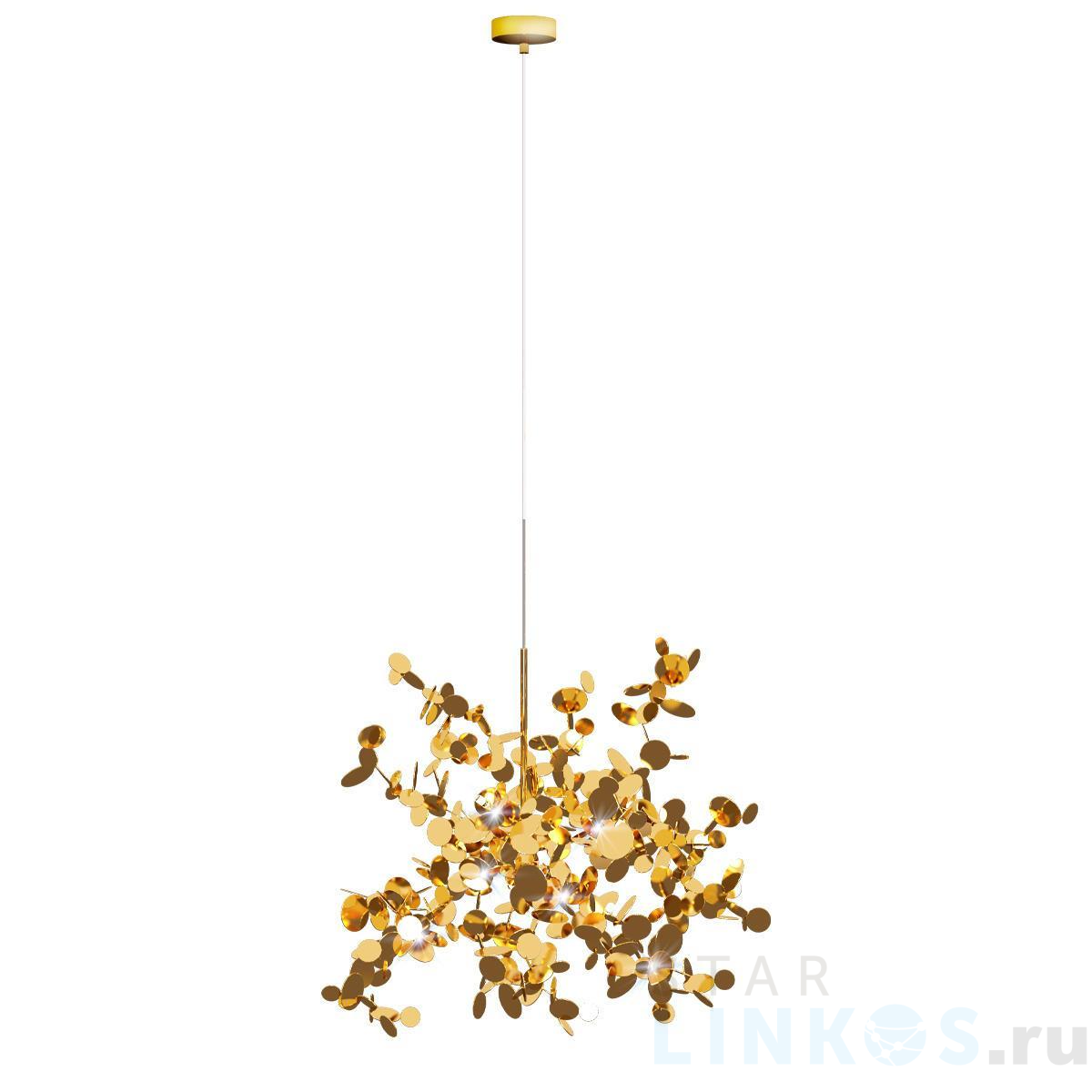 Подвесная люстра Loft IT Spark 10101 Gold в стиле арт-деко используется в интерьере спальни с установкой на потолок.