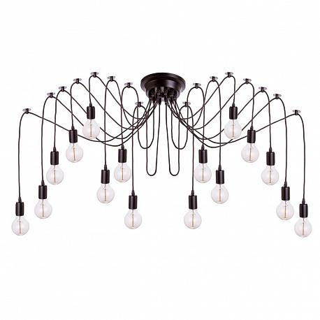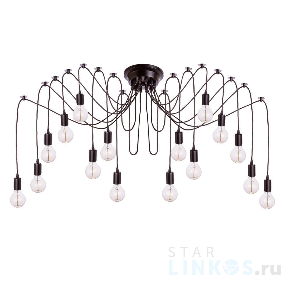 Поставщик рекомендует использовать лампы накаливания с цоколем E27 для освещения площади 35,6 м2. Подвесная люстра Loft IT Spider Loft1162/16 в стиле лофт используется в интерьере больших залов с установкой на потолок.