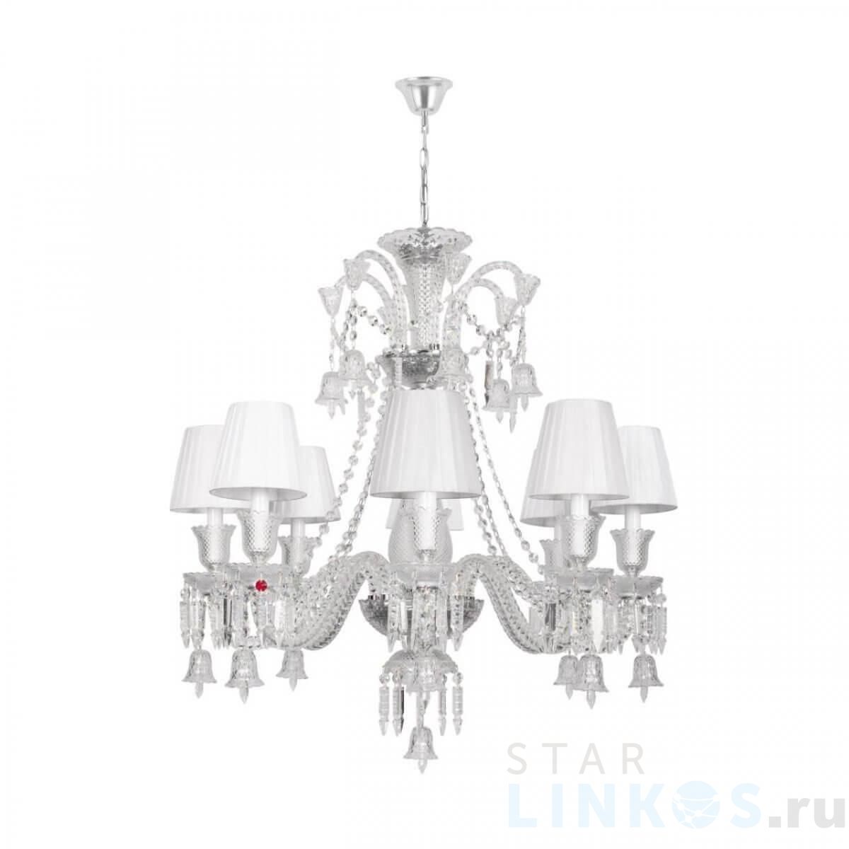 Поставщик рекомендует использовать лампы накаливания с цоколем E14. Подвесная люстра Loft IT Zenith 10210/8 White в стиле арт-деко используется в интерьере гостиной с установкой на потолок.