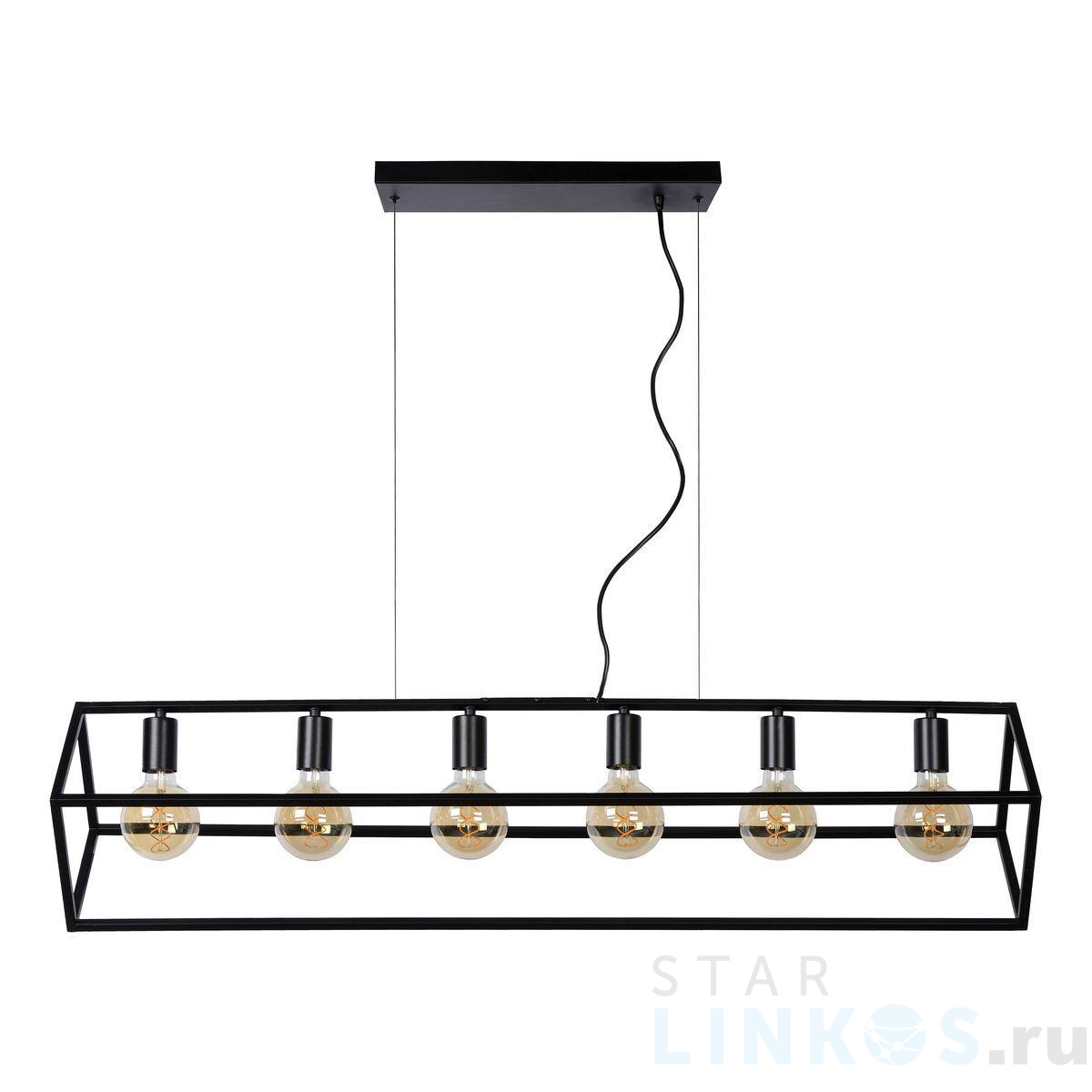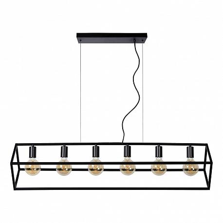 Поставщик рекомендует использовать лампы накаливания с цоколем E27. Подвесная люстра Lucide Fabian 00425/06/30 в стиле лофт используется в интерьере кухни с установкой на потолок.