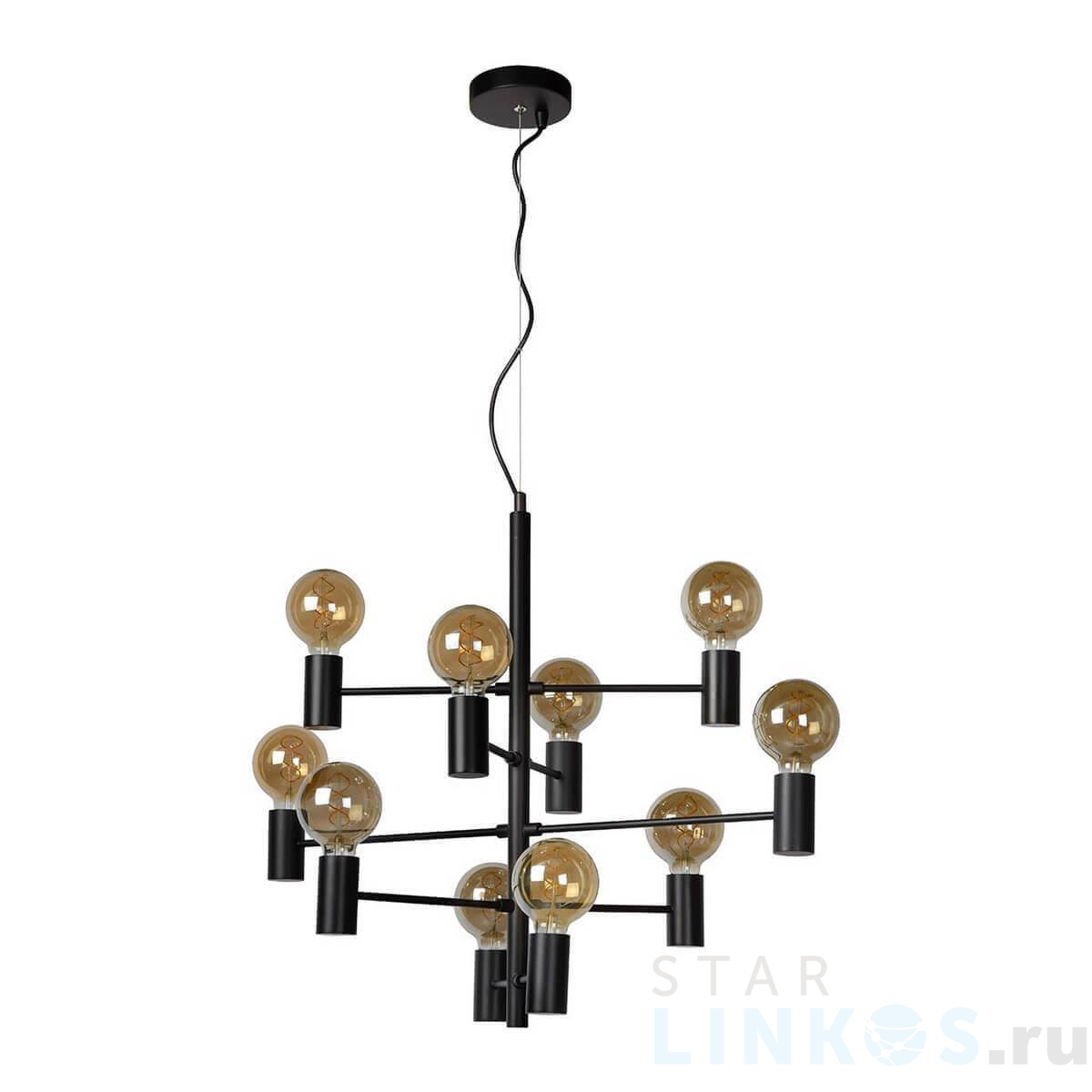 Поставщик рекомендует использовать лампы накаливания с цоколем E27. Подвесная люстра Lucide Leanne 21421/10/30 в современном стиле используется в интерьере гостиной с установкой на потолок.