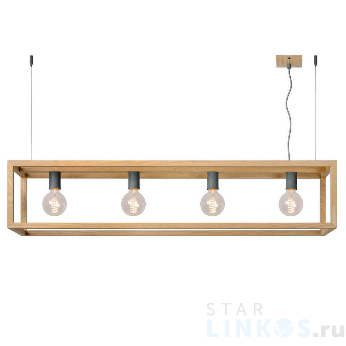 Поставщик рекомендует использовать лампы накаливания с цоколем E27 для освещения площади 13,3 м2. Подвесная люстра Lucide Oris 31472/04/72 в стиле лофт используется в интерьере кухни с установкой на потолок.