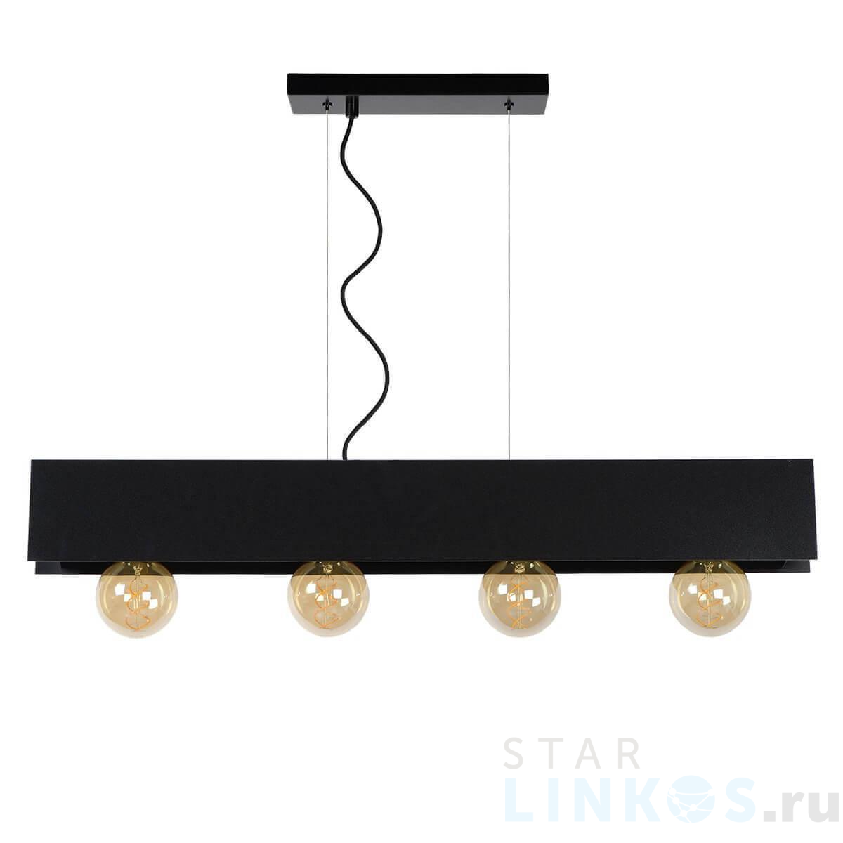 Поставщик рекомендует использовать лампы накаливания с цоколем E27 для освещения площади 13,3 м2. Подвесная люстра Lucide Surtus 30474/04/30 в стиле лофт используется в интерьере кухни с установкой на потолок.