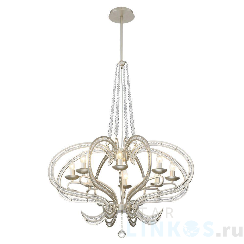 Поставщик рекомендует использовать лампы накаливания с цоколем E14 для освещения площади 26,7 м2. Подвесная люстра Lumien Hall Хилер 2026/8P-CGSL в используется в интерьере больших залов с установкой на потолок.