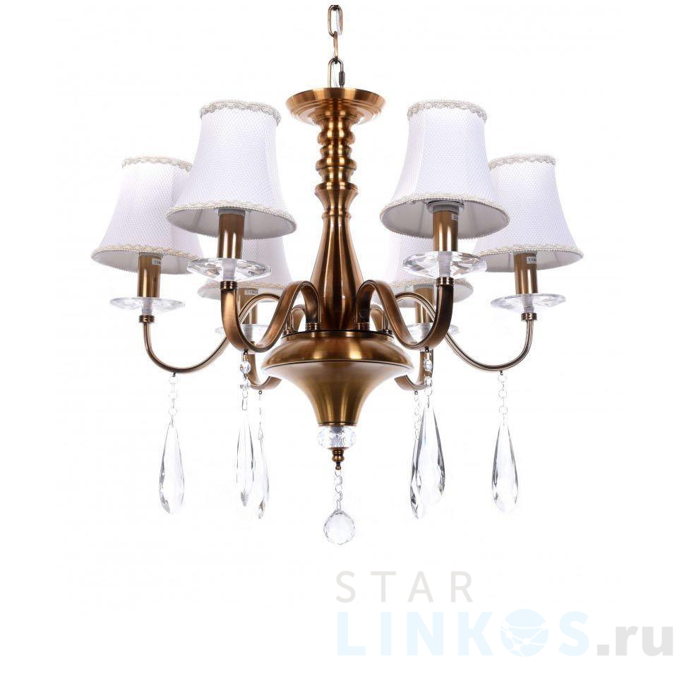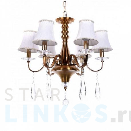Поставщик рекомендует использовать лампы накаливания с цоколем E14. Подвесная люстра Lumina Deco Rifossa LDP 9012-6 в классическом стиле используется в интерьере спальни с установкой на потолок.