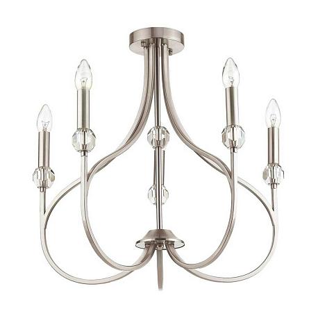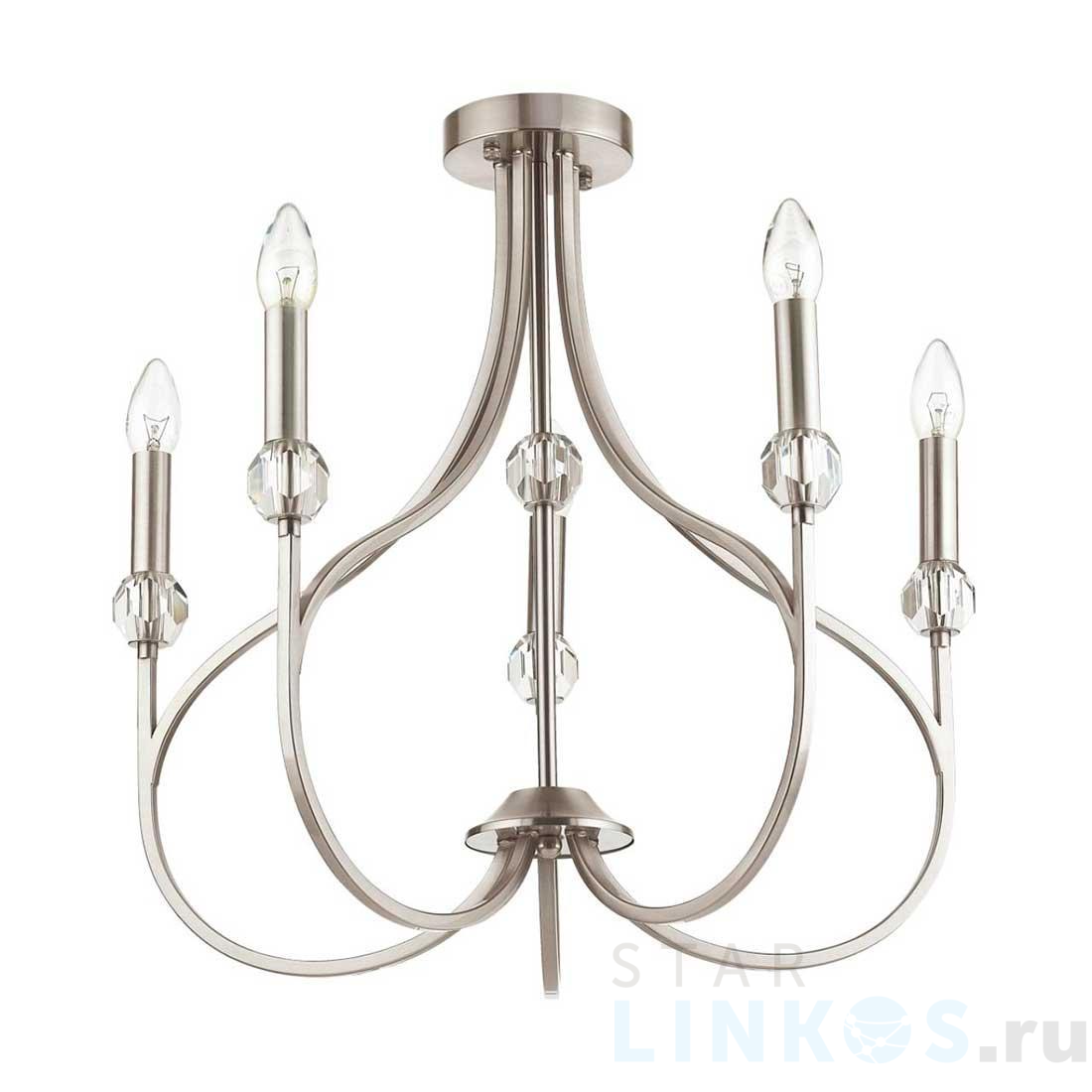 Поставщик рекомендует использовать лампы накаливания с цоколем E14 для освещения площади 16,7 м2. Подвесная люстра Lumion Neoclassi Mackenzie 4495/5C в используется в интерьере кухни с установкой на потолок.