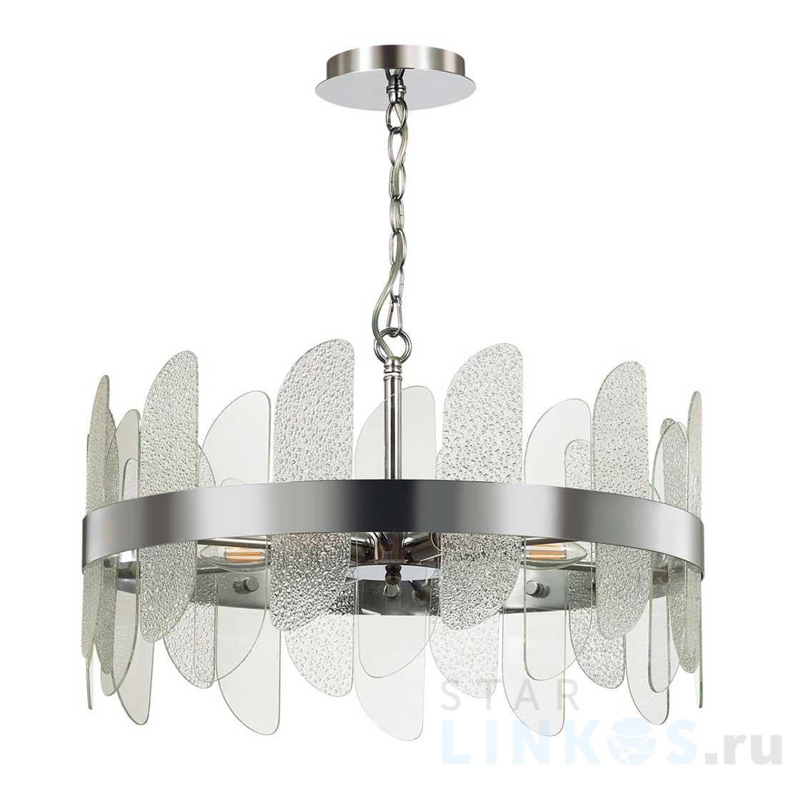 Поставщик рекомендует использовать лампы накаливания с цоколем E14 для освещения площади 15 м2. Подвесная люстра Lumion Moderni Sigrid 5271/6 в используется в интерьере спальни с установкой на потолок.