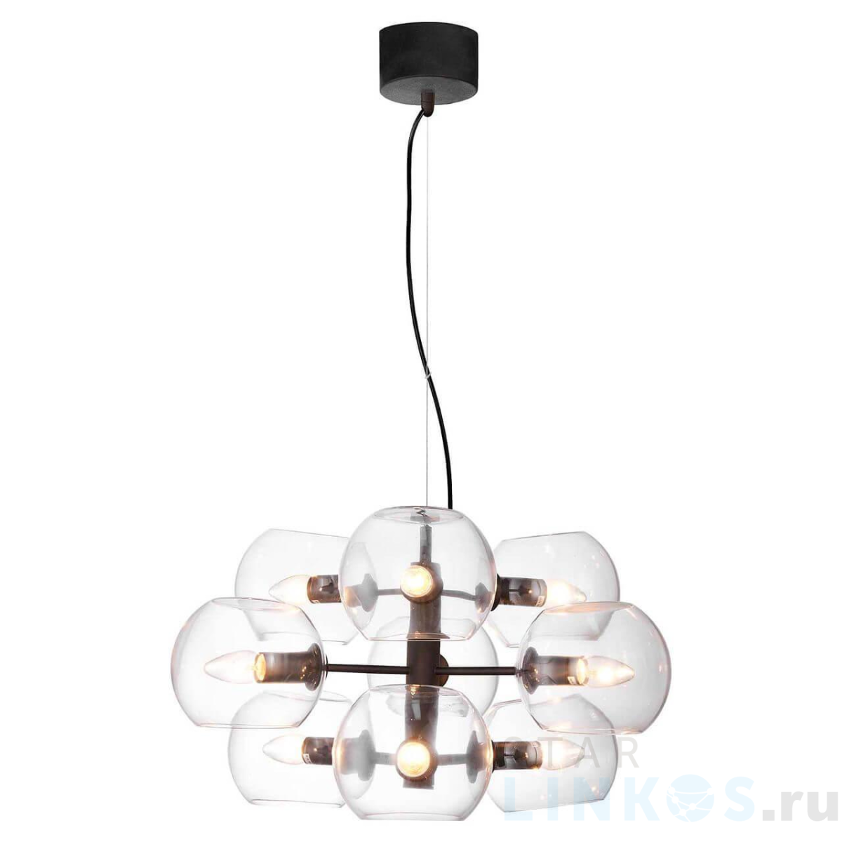 Поставщик рекомендует использовать лампы накаливания с цоколем E14. Подвесная люстра Lussole Loft Flaming LSP-8163 в стиле лофт используется в интерьере гостиной с установкой на потолок.
