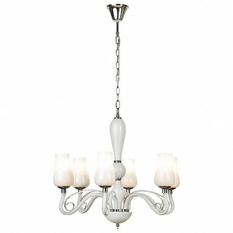 Поставщик рекомендует использовать лампы накаливания с цоколем E14 для освещения площади 13,3 м2. Подвесная люстра Lussole LSP-8262 в стиле арт-деко используется в интерьере кухни с установкой на потолок.