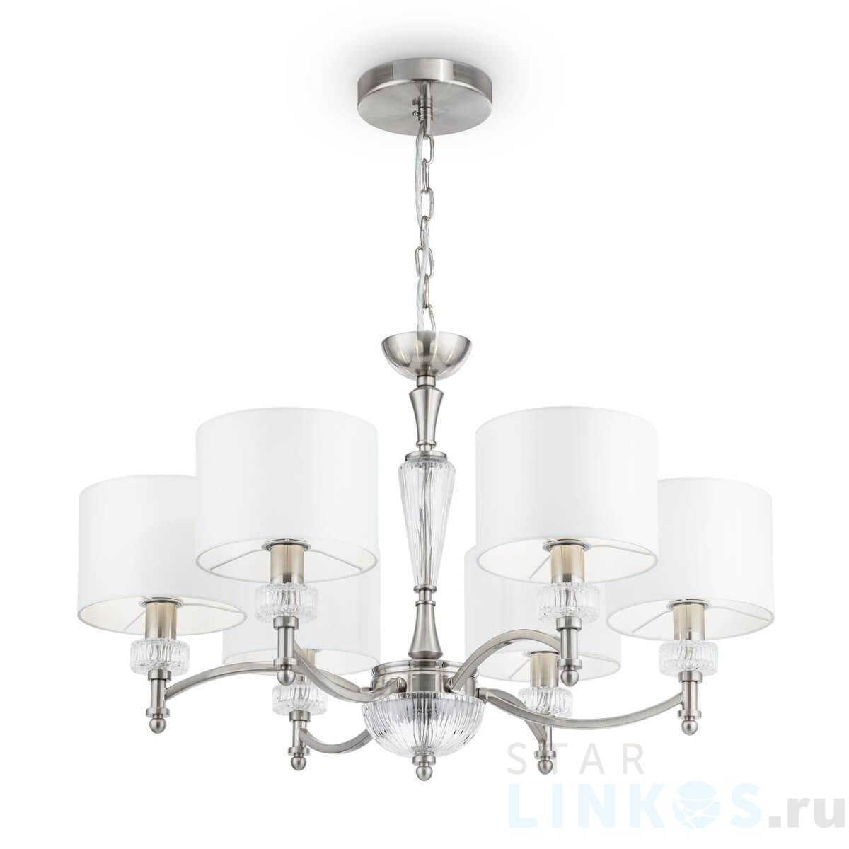 Поставщик рекомендует использовать лампы накаливания с цоколем E14 для освещения площади 13,3 м2. Подвесная люстра Maytoni Alicante MOD014CL-06N в используется в интерьере спальни с установкой на потолок.