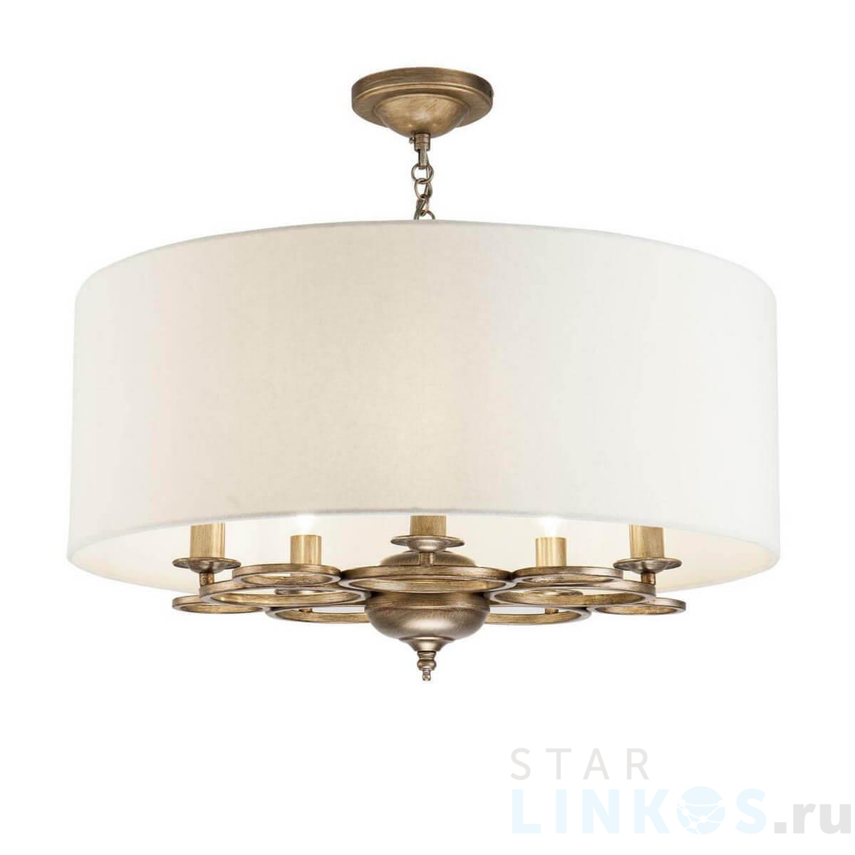 Поставщик рекомендует использовать лампы накаливания с цоколем E14 для освещения площади 11,1 м2. Подвесная люстра Maytoni Anna H007PL-05G в используется в интерьере спальни с установкой на потолок.