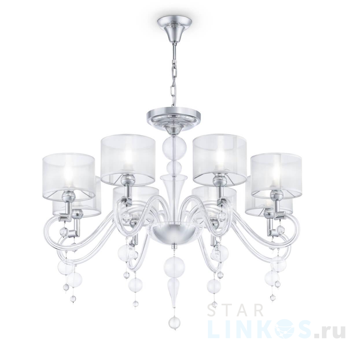 Поставщик рекомендует использовать лампы накаливания с цоколем E14 для освещения площади 17,8 м2. Подвесная люстра Maytoni Bubble Dreams MOD603-08-N в используется в интерьере гостиной с установкой на потолок.