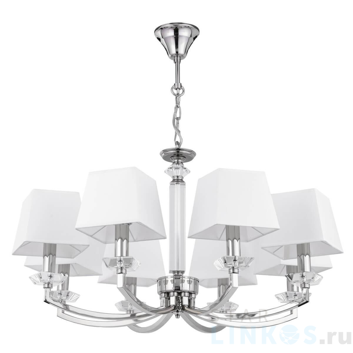 Поставщик рекомендует использовать лампы накаливания с цоколем E14 для освещения площади 17,8 м2. Подвесная люстра Maytoni Chandler MOD019PL-08CH в используется в интерьере гостиной с установкой на потолок.