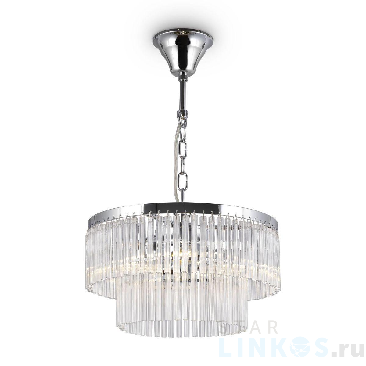 Поставщик рекомендует использовать лампы накаливания с цоколем E14 для освещения площади 8,9 м2. Подвесная люстра Maytoni Colonne MOD093PL-04CH в используется в интерьере спальни с установкой на потолок.