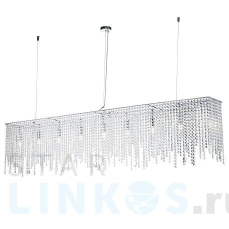 Поставщик рекомендует использовать лампы накаливания с цоколем E14 для освещения площади 30 м2. Подвесная люстра Maytoni Empress DIA002PL-09CH в используется в интерьере гостиной с установкой на потолок.