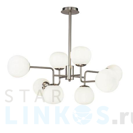 Поставщик рекомендует использовать лампы накаливания с цоколем E14 для освещения площади 17,8 м2. Подвесная люстра Maytoni Erich MOD221-PL-08-N в используется в интерьере гостиной с установкой на потолок.