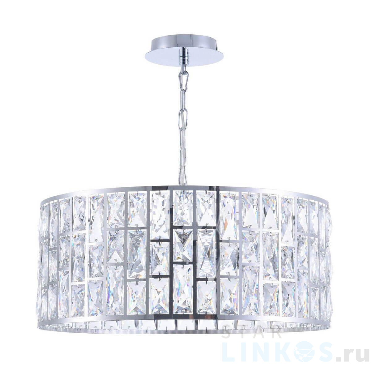 Поставщик рекомендует использовать лампы накаливания с цоколем E27 для освещения площади 13,3 м2. Подвесная люстра Maytoni Gelid MOD184-PL-04-CH в используется в интерьере спальни с установкой на потолок.