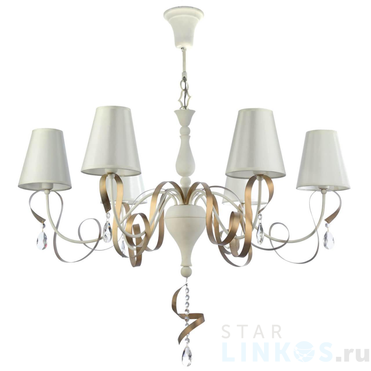 Поставщик рекомендует использовать лампы накаливания с цоколем E14 для освещения площади 13,3 м2. Подвесная люстра Maytoni Intreccio ARM010-06-W в используется в интерьере спальни с установкой на потолок.
