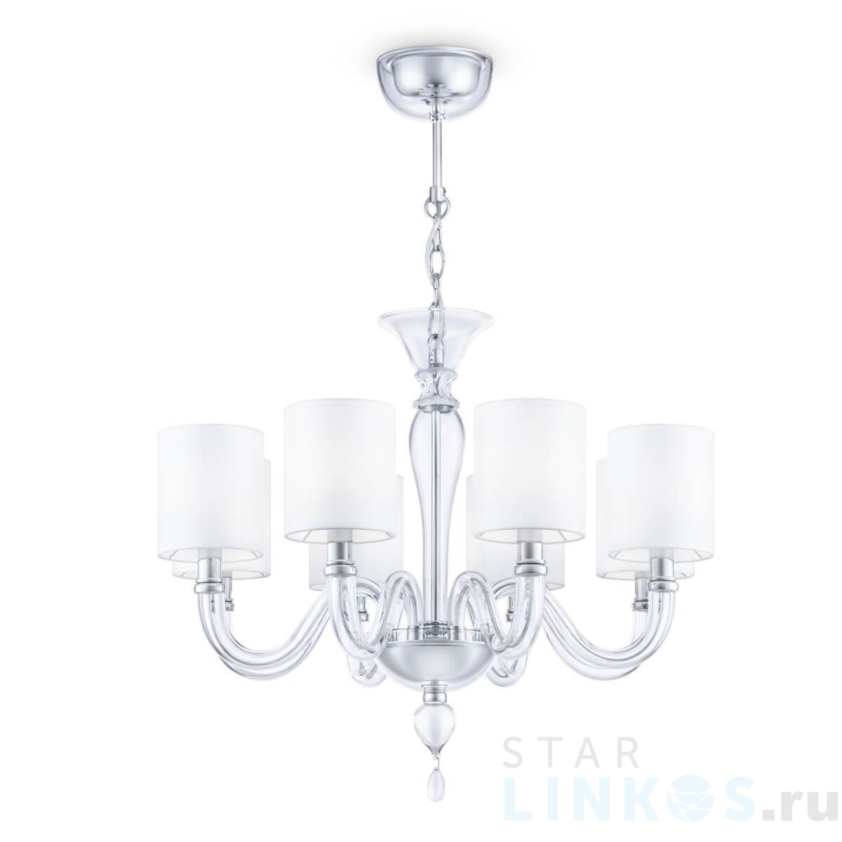 Поставщик рекомендует использовать лампы накаливания с цоколем E14 для освещения площади 17,8 м2. Подвесная люстра Maytoni Leti DIA012PL-08TR в используется в интерьере гостиной с установкой на потолок.