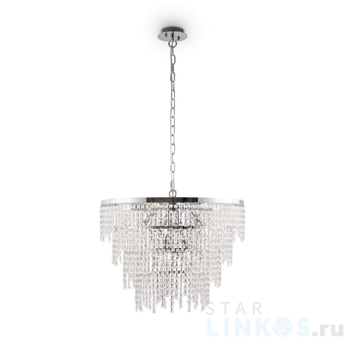 Поставщик рекомендует использовать лампы накаливания с цоколем E14. Подвесная люстра Maytoni Noa DIA202PL-12CH в классическом стиле используется в интерьере гостиной с установкой на потолок.
