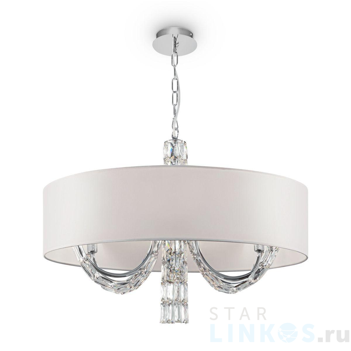 Поставщик рекомендует использовать лампы накаливания с цоколем E14 для освещения площади 13,3 м2. Подвесная люстра Maytoni Talento DIA008PL-06CH в стиле арт-деко используется в интерьере спальни с установкой на потолок.
