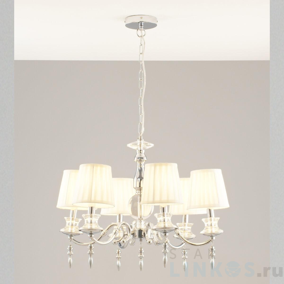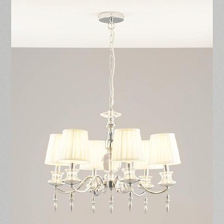 Поставщик рекомендует использовать лампы накаливания с цоколем E14. Подвесная люстра Moderli Bingo V10330-6P в классическом стиле используется в интерьере гостиной с установкой на потолок.