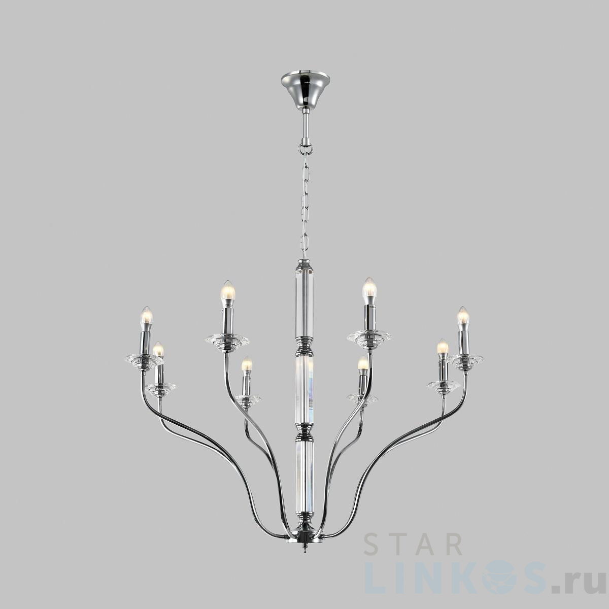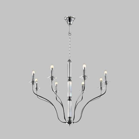 Поставщик рекомендует использовать лампы накаливания с цоколем E14 для освещения площади 20 м2. Подвесная люстра Moderli Catania V10428-8P в используется в интерьере гостиной с установкой на потолок.