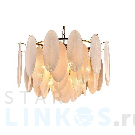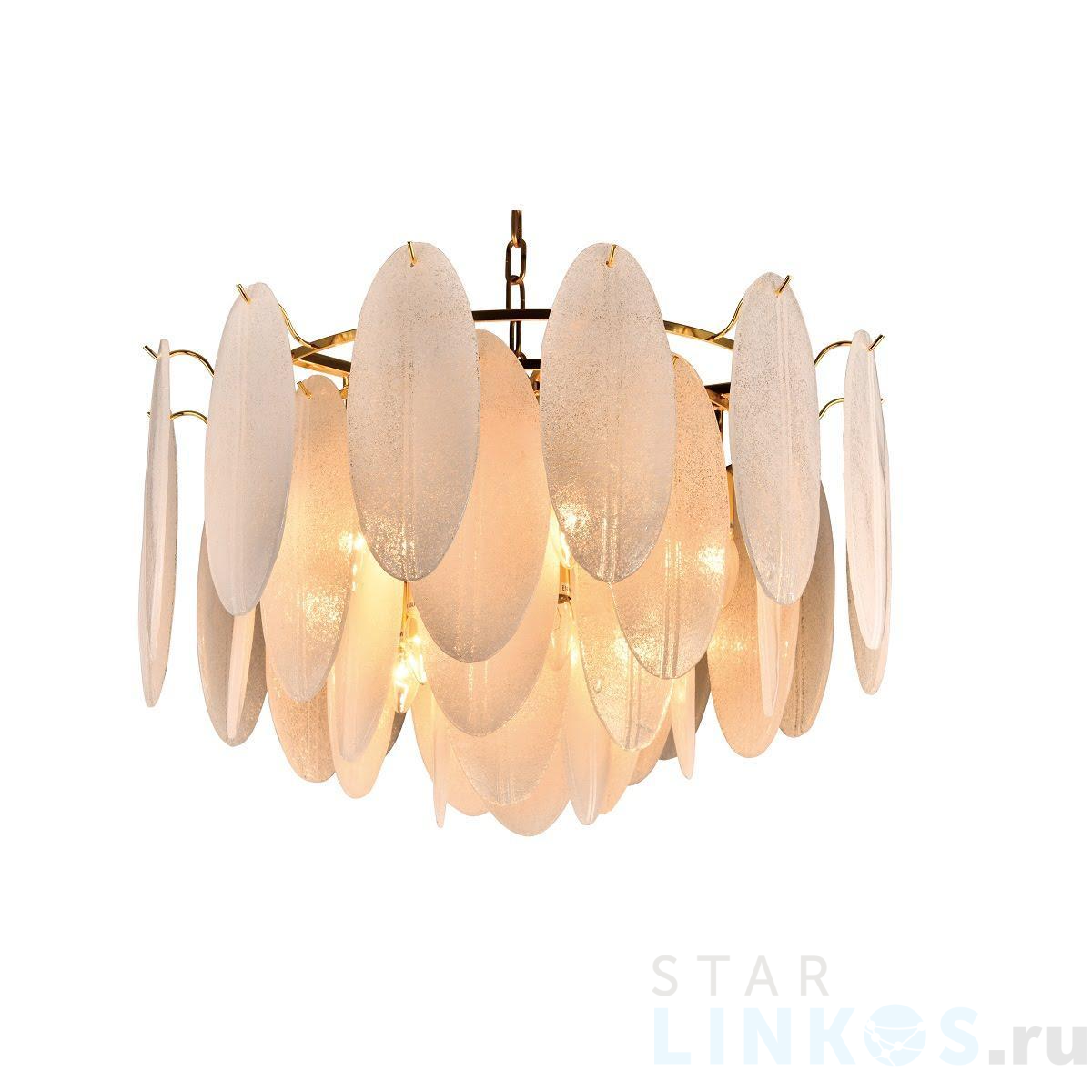 Поставщик рекомендует использовать лампы накаливания с цоколем E14 для освещения площади 20 м2. Подвесная люстра Moderli Rimini V10436-PL в используется в интерьере гостиной с установкой на потолок.
