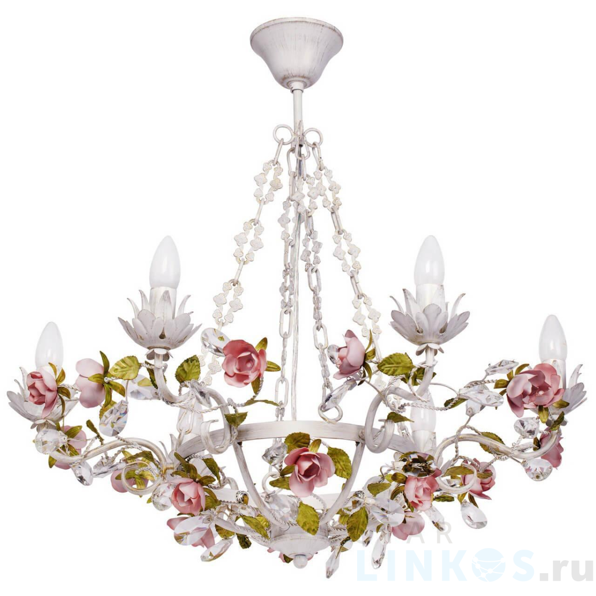 Поставщик рекомендует использовать лампы накаливания с цоколем E14 для освещения площади 14 м2. Подвесная люстра MW-Light Букет 421013506 в стиле прованс используется в интерьере гостиной с установкой на потолок.