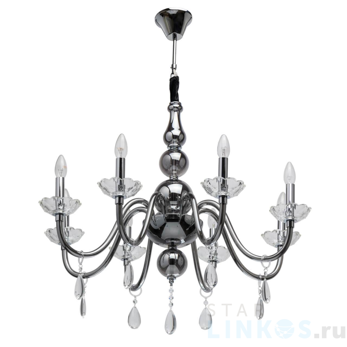 Поставщик рекомендует использовать лампы накаливания с цоколем E14 для освещения площади 24 м2. Подвесная люстра MW-Light Элла 483014808 в используется в интерьере гостиной с установкой на потолок.