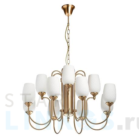 Поставщик рекомендует использовать лампы накаливания с цоколем E27 для освещения площади 24 м2. Подвесная люстра MW-Light Палермо 28 386018112 в классическом стиле используется в интерьере гостиной с установкой на потолок.