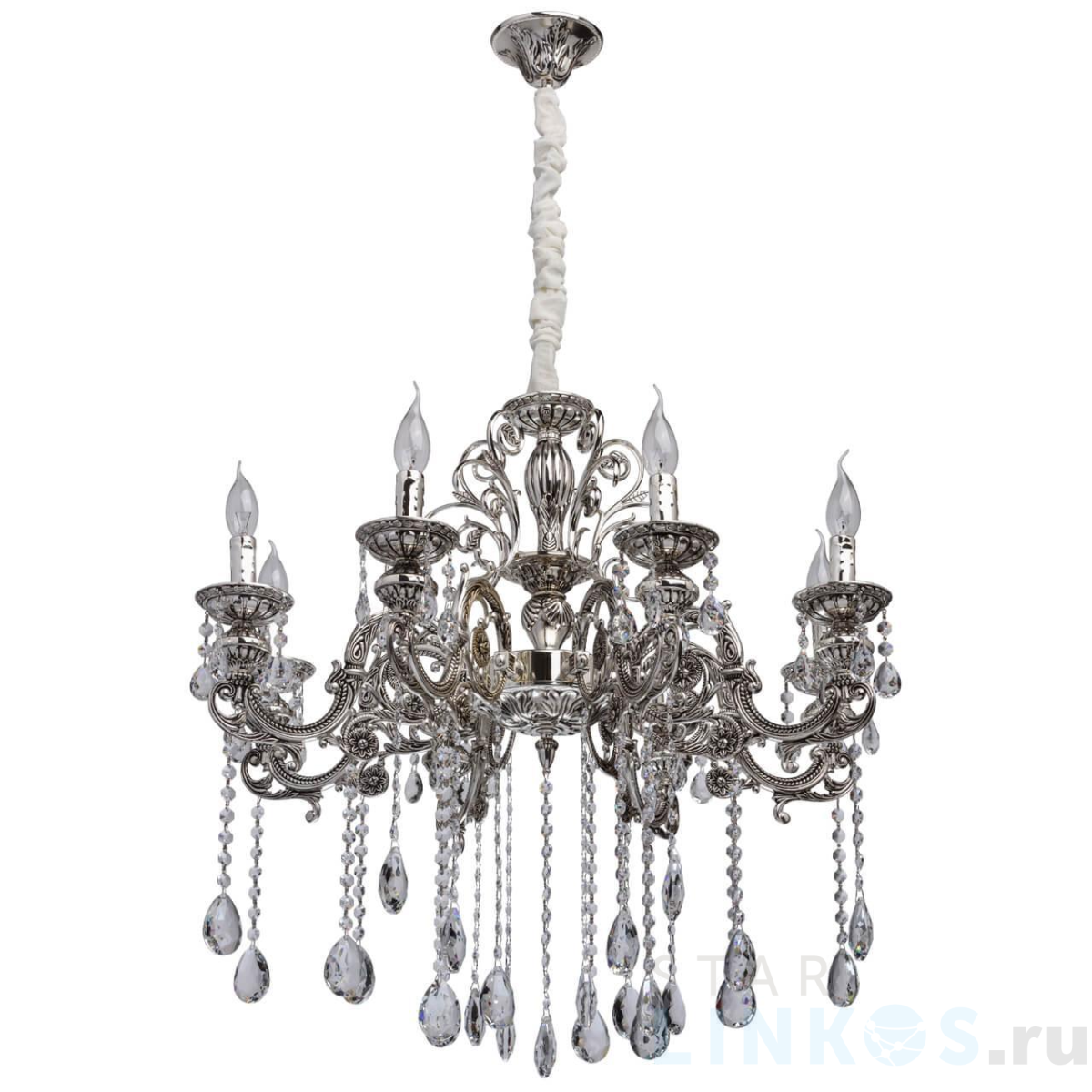 Поставщик рекомендует использовать лампы накаливания с цоколем E14 для освещения площади 18 м2. Подвесная люстра MW-Light Селена 10 482013708 в классическом стиле используется в интерьере гостиной с установкой на потолок.