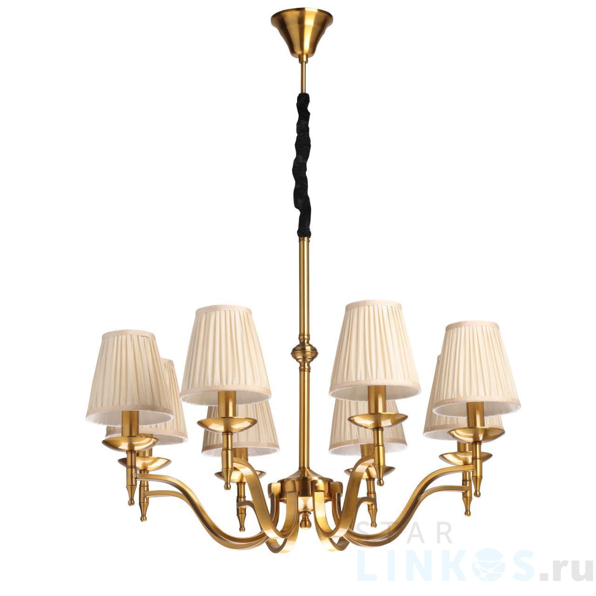 Поставщик рекомендует использовать лампы накаливания с цоколем E14 для освещения площади 16 м2. Подвесная люстра MW-Light Вирджиния 7 444012308 в используется в интерьере гостиной с установкой на потолок.