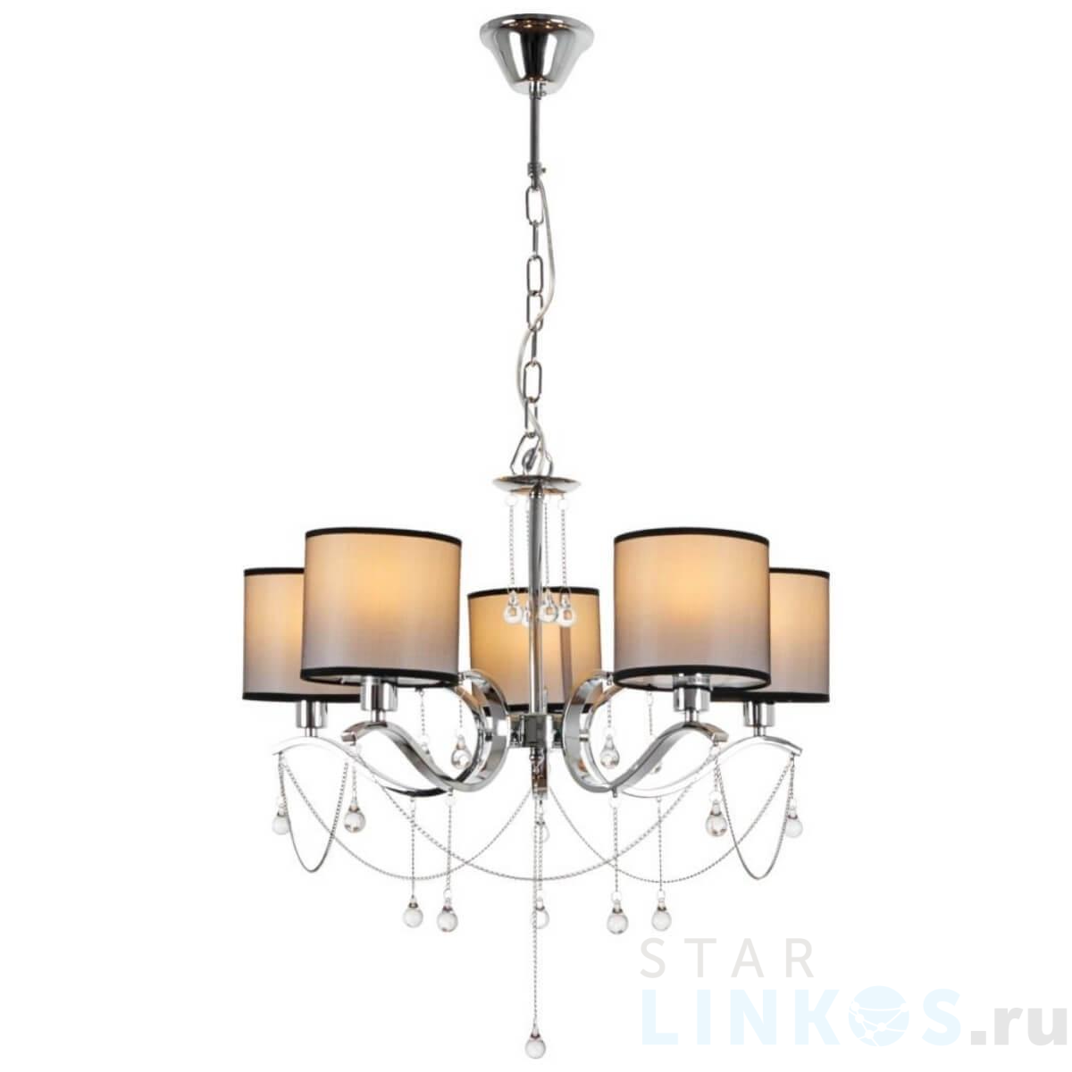 Поставщик рекомендует использовать лампы накаливания с цоколем E14 для освещения площади 15 м2. Подвесная люстра MyFar Dante MR1551-5P в стиле арт-деко используется в интерьере гостиной с установкой на потолок.