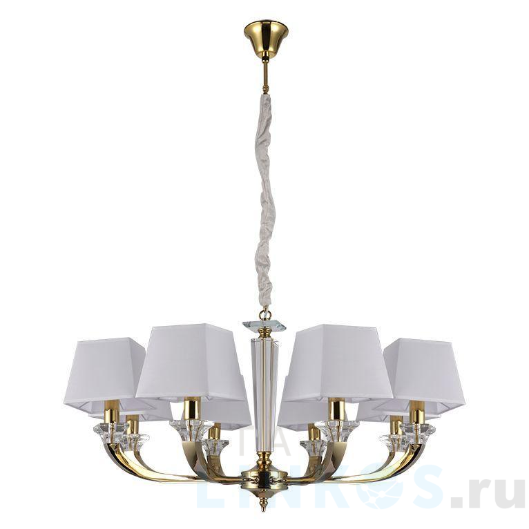 Поставщик рекомендует использовать лампы накаливания с цоколем E14. Подвесная люстра Newport 11408/C gold М0067898 в используется в интерьере гостиной с установкой на потолок.