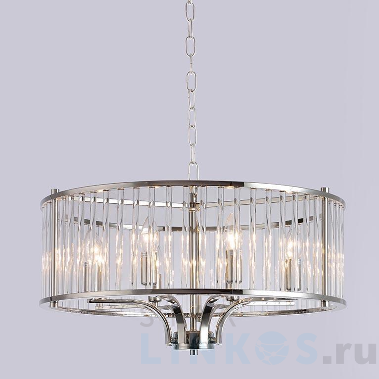Поставщик рекомендует использовать лампы накаливания с цоколем E14 для освещения площади 17,8 м2. Подвесная люстра Newport 12308/S М0062013 в используется в интерьере гостиной с установкой на потолок.