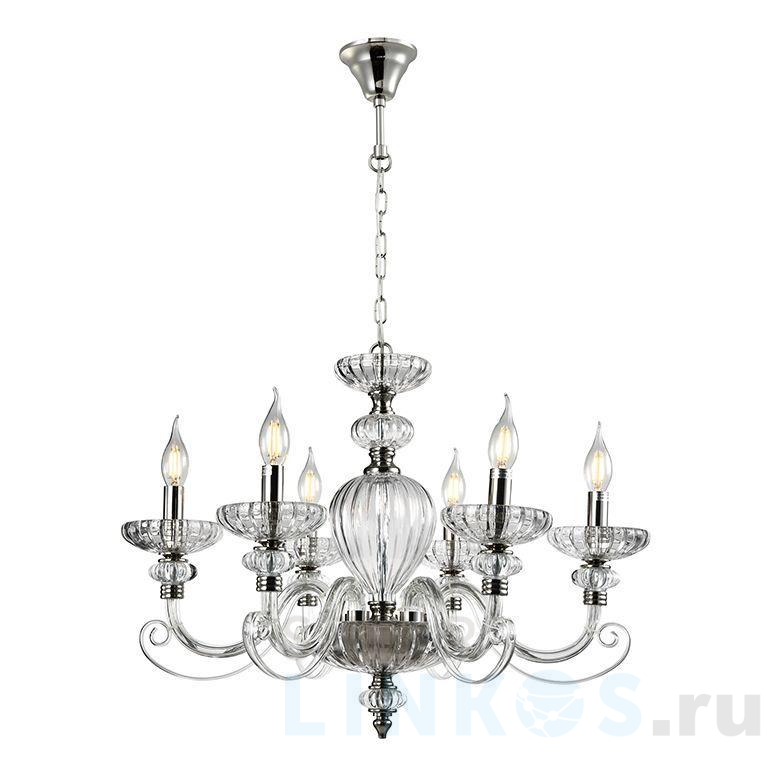 Поставщик рекомендует использовать лампы накаливания с цоколем E14. Подвесная люстра Newport 12806/C М0067244 в классическом стиле используется в интерьере спальни с установкой на потолок.