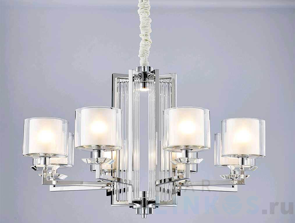 Поставщик рекомендует использовать лампы накаливания с цоколем E14 для освещения площади 26,7 м2. Подвесная люстра Newport 4408+1/C М0058550 в используется в интерьере гостиной с установкой на потолок.