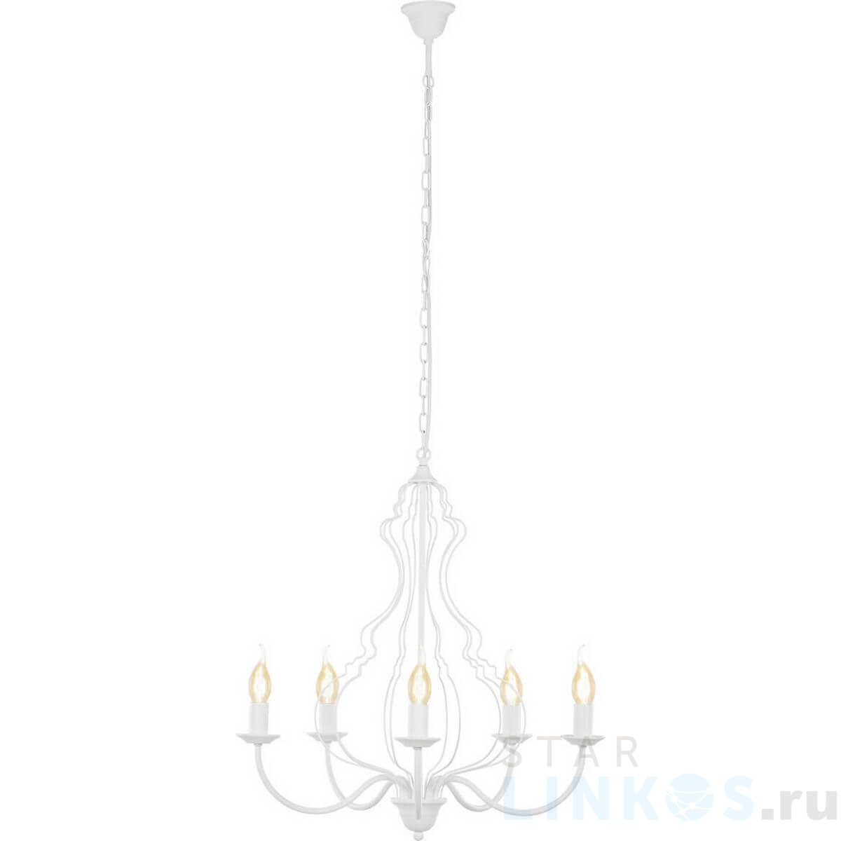 Поставщик рекомендует использовать лампы накаливания с цоколем E14 для освещения площади 16,7 м2. Подвесная люстра Nowodvorski Margaret 6330 в стиле прованс используется в интерьере гостиной с установкой на потолок.