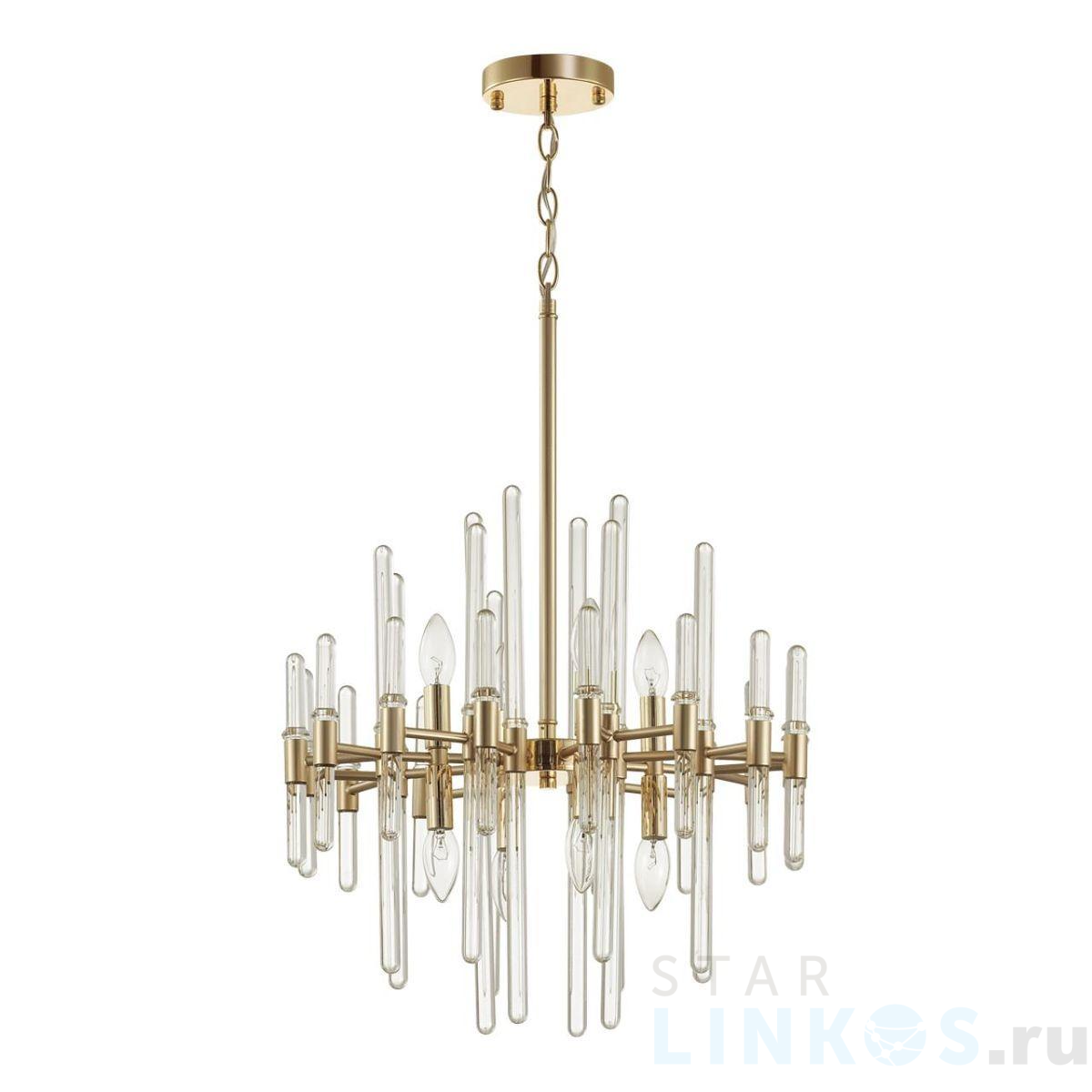Поставщик рекомендует использовать лампы накаливания с цоколем E14 для освещения площади 16 м2. Подвесная люстра Odeon Light Hall Stika 4988/8 в используется в интерьере гостиной с установкой на потолок.