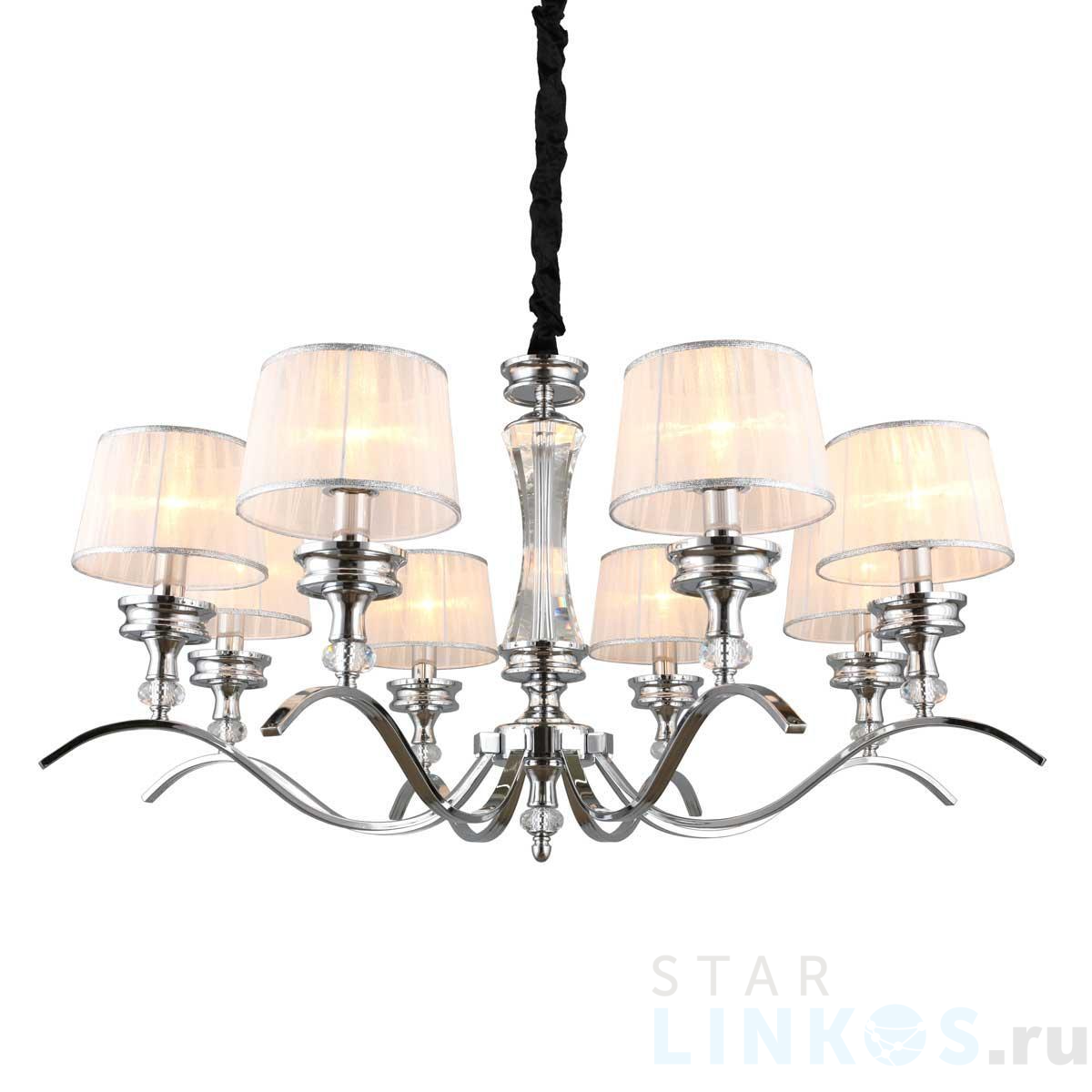 Поставщик рекомендует использовать лампы накаливания с цоколем E14. Подвесная люстра Omnilux Arosio OML-88403-08 в классическом стиле используется в интерьере гостиной с установкой на потолок.