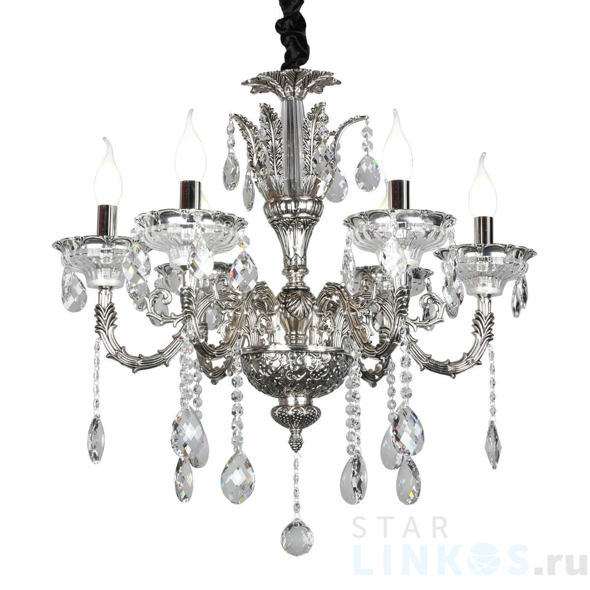 Поставщик рекомендует использовать лампы накаливания с цоколем E14 для освещения площади 14 м2. Подвесная люстра Omnilux Badesi OML-70503-06 в классическом стиле используется в интерьере спальни с установкой на потолок.