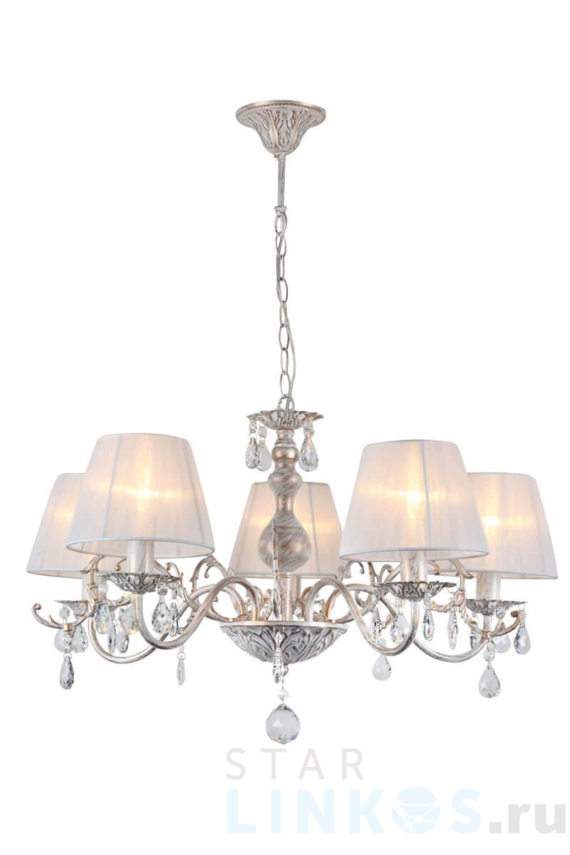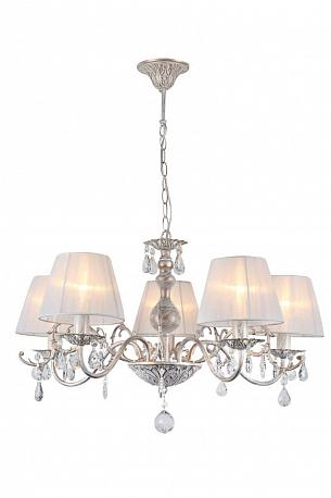 Поставщик рекомендует использовать лампы накаливания с цоколем E14 для освещения площади 12 м2. Подвесная люстра Omnilux Bantine OML-53203-05 в используется в интерьере спальни с установкой на потолок.