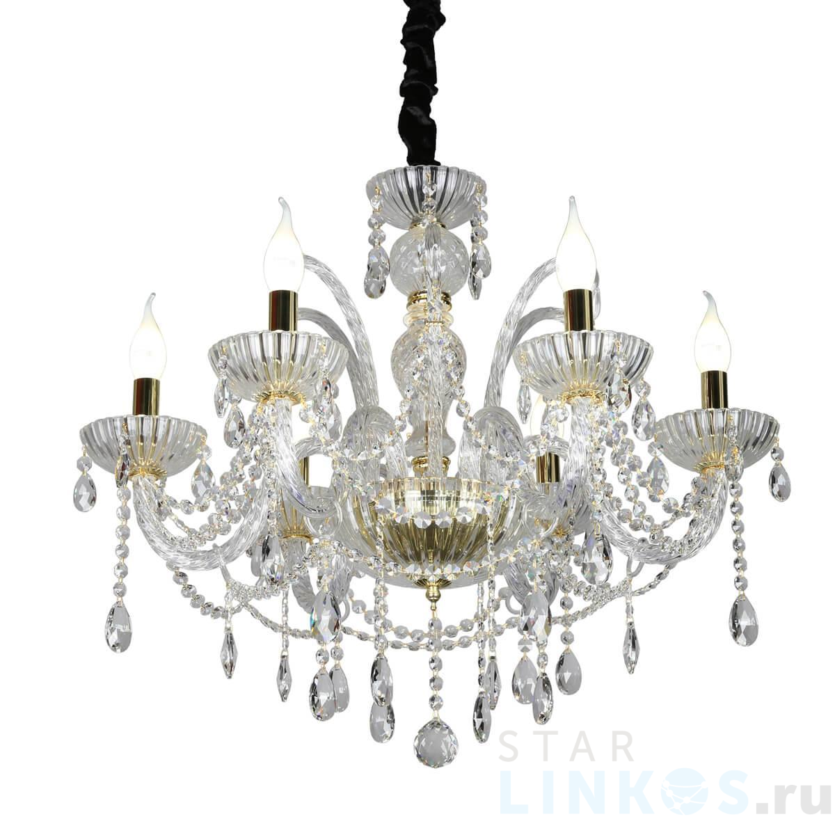 Поставщик рекомендует использовать лампы накаливания с цоколем E14 для освещения площади 14 м2. Подвесная люстра Omnilux Bonaita OML-70103-06 в классическом стиле используется в интерьере спальни с установкой на потолок.