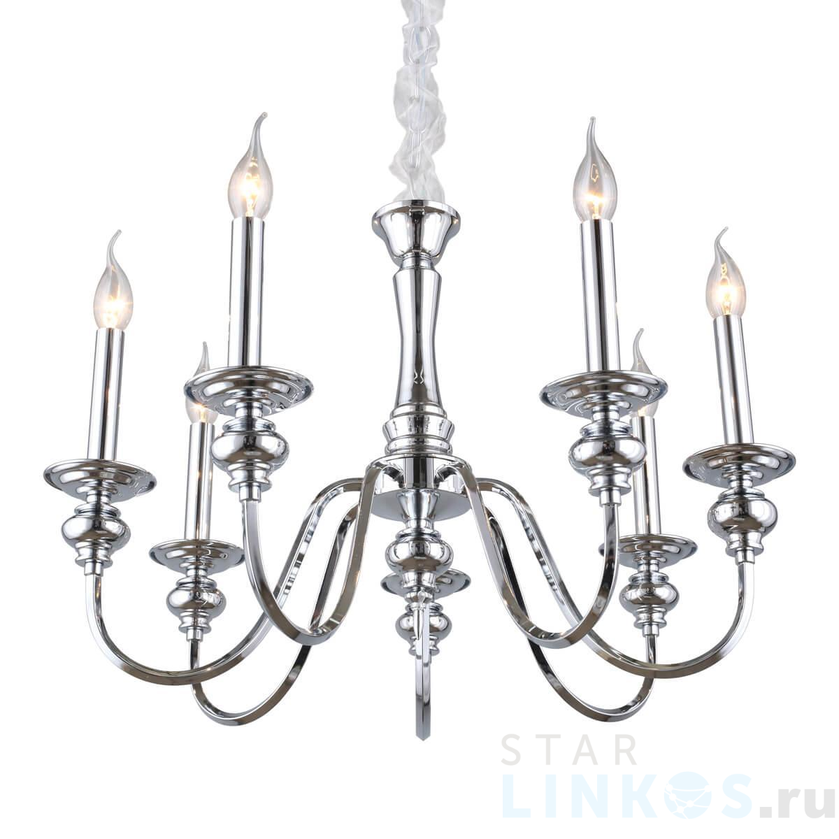 Поставщик рекомендует использовать лампы накаливания с цоколем E14 для освещения площади 14 м2. Подвесная люстра Omnilux Campalto OML-71903-07 в классическом стиле используется в интерьере гостиной с установкой на потолок.