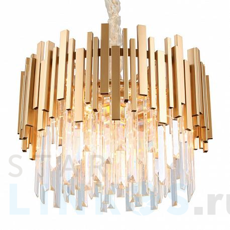 Поставщик рекомендует использовать лампы накаливания с цоколем E14 для освещения площади 18 м2. Подвесная люстра Omnilux Carisio OML-72803-09 в классическом стиле используется в интерьере гостиной с установкой на потолок.