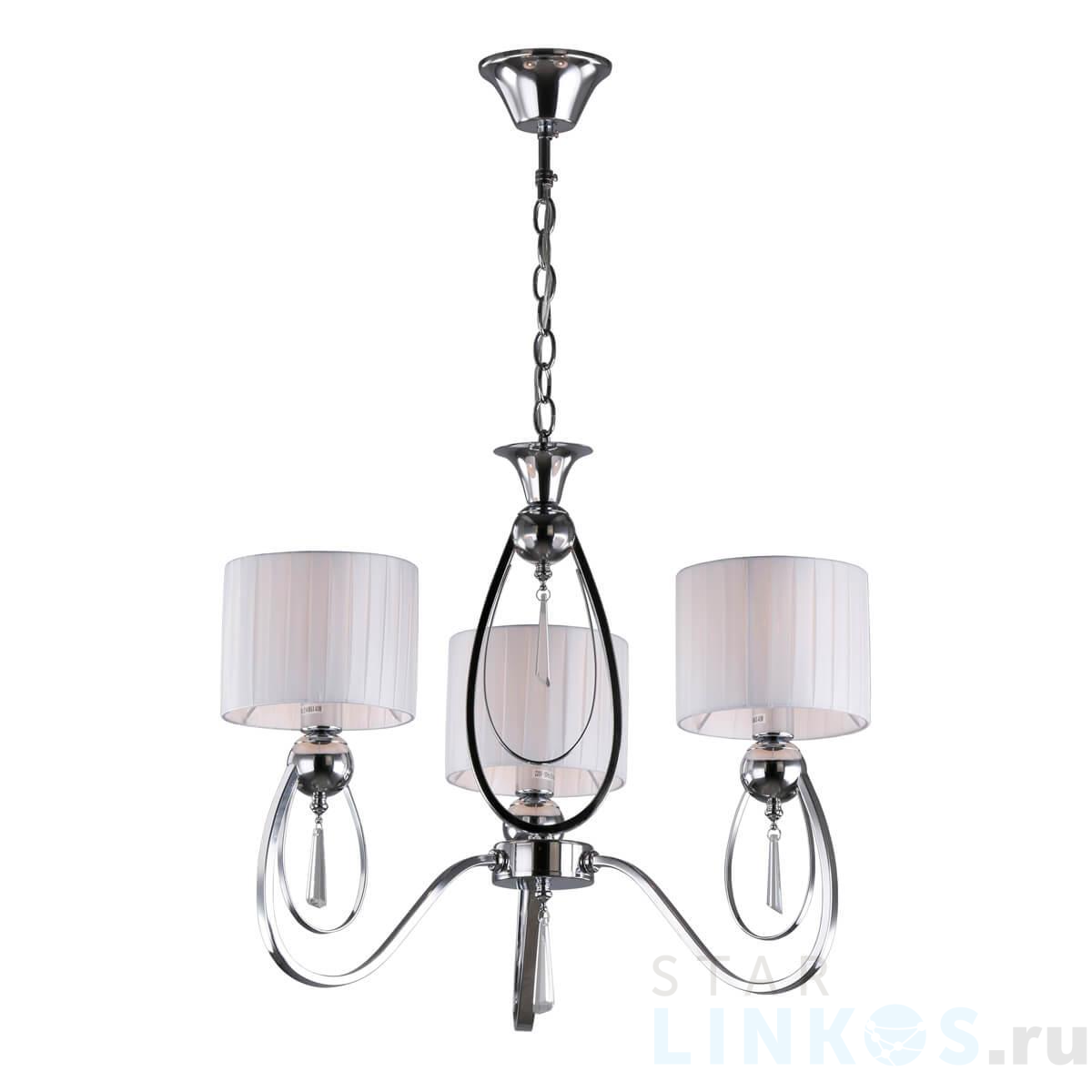 Поставщик рекомендует использовать лампы накаливания с цоколем E14 для освещения площади 7 м2. Подвесная люстра Omnilux Mellitto OML-63803-03 в классическом стиле используется в интерьере спальни с установкой на потолок.