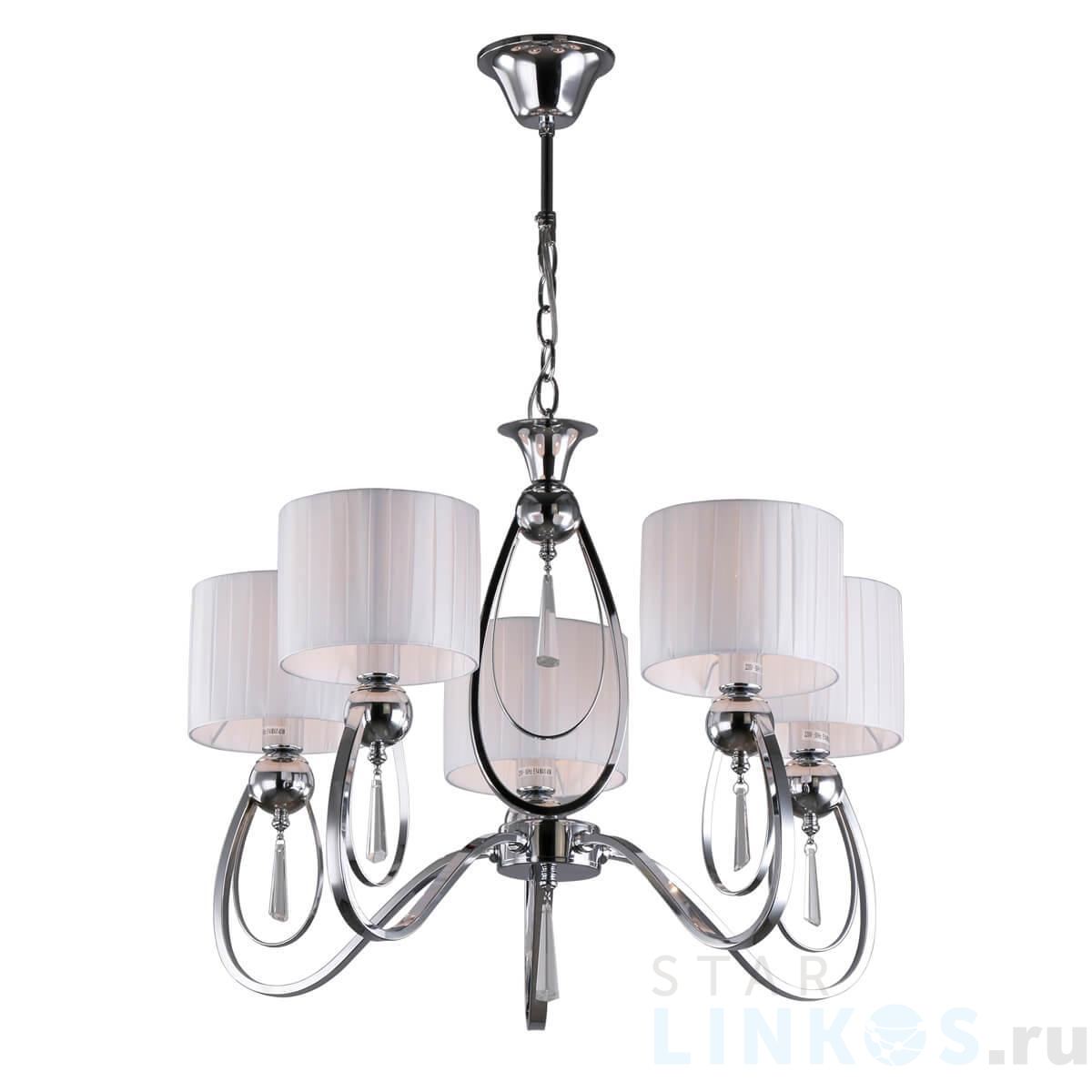 Поставщик рекомендует использовать лампы накаливания с цоколем E14 для освещения площади 12 м2. Подвесная люстра Omnilux Mellitto OML-63803-05 в классическом стиле используется в интерьере спальни с установкой на потолок.